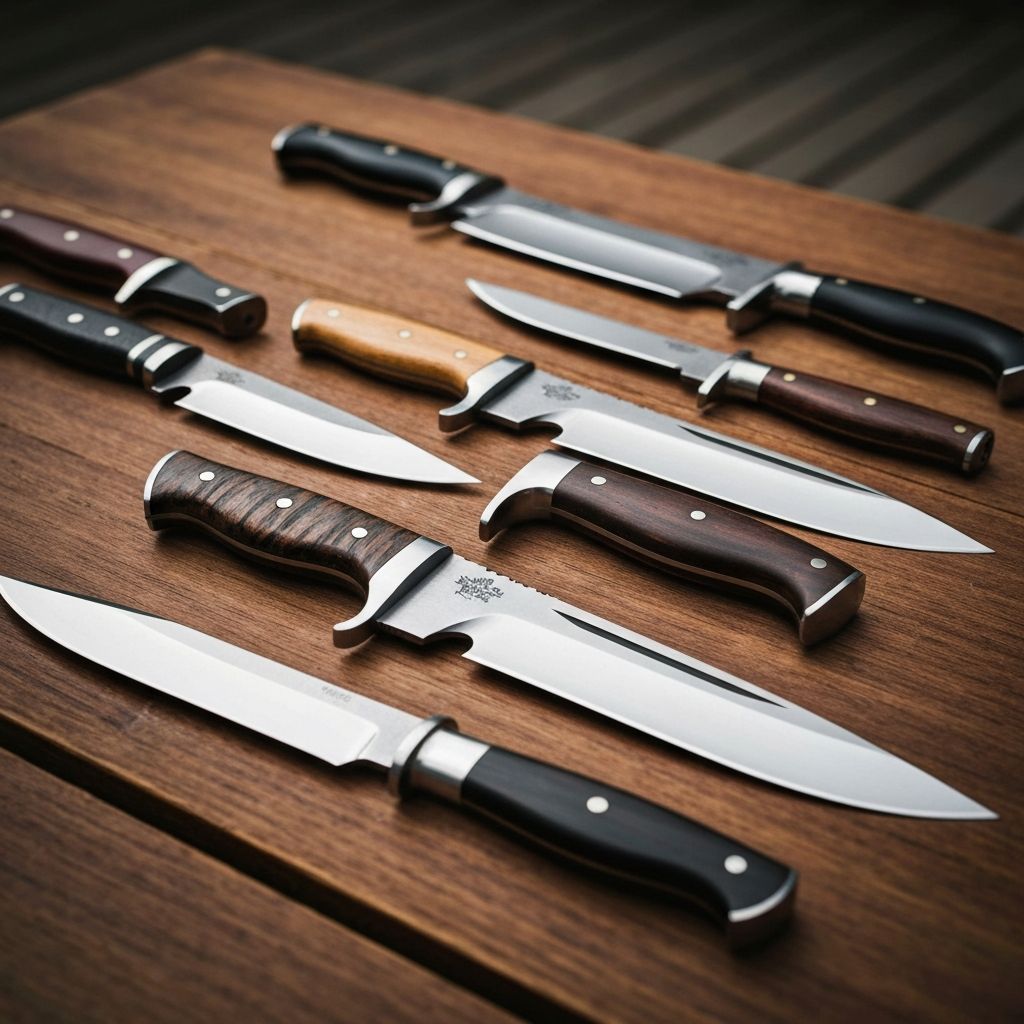 | Feature | Large Bowies | Skinning Knives | Pocket Knives |